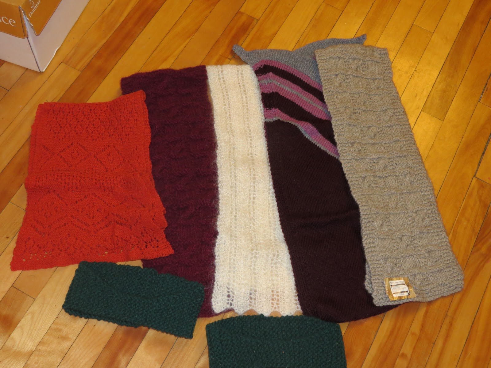 | Dianne Suzak of the Ottawa Knitting Guild dropped off these scarves and headbands. |